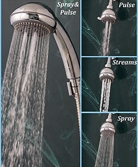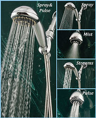 All our Massage showers include a pulsating, or massage, spray setting plus other types of shower sprays. You change spray settings by turning the face plate, which opens and closes waterways inside the shower nozzle directing the water flow through different cavities creating different spray patterns.